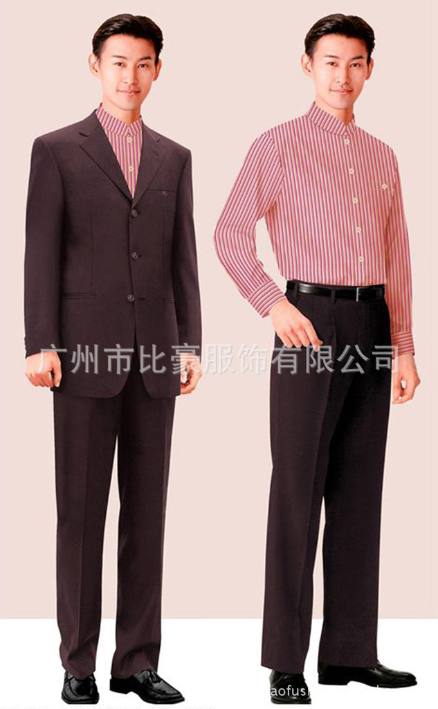 产品面料:有毛料、70%W30%P、50%W50%P、30%W70%P、仿毛料、T/R、卡丹皇、制服呢等各种西服面料,可自己选择。