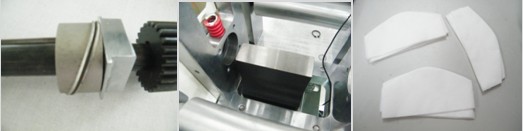 杯型口罩面罩机(NK-CMM03):用于杯型口罩外层面罩的生产;主要是利用超声波切割及自动熔接封边的原理,完成切片的异形切割及熔接。该机器解决传统花边机定位不精准、尺寸控制不精确、生产效率低及人工成本高等缺点。集放料、棍轮拉料、超声波切割、废料分离、成品分片等诸多工序为一体,极大的提高了生产效率,降低了生产成本,使产品更加标准化、质量更稳定、外形更美观。