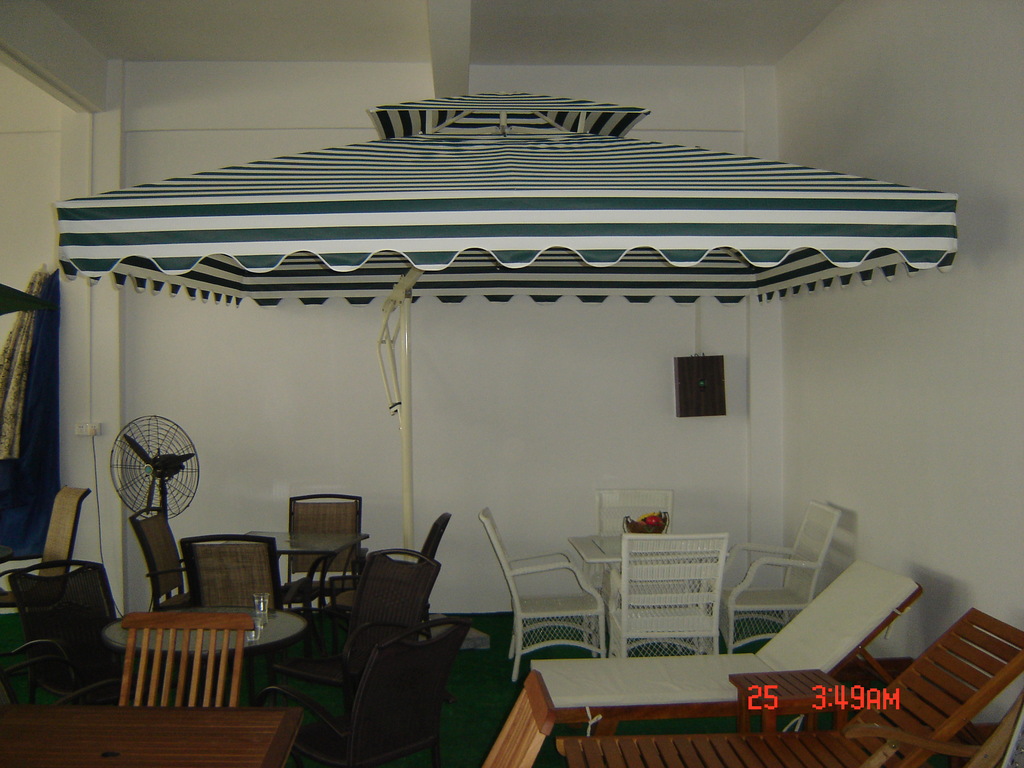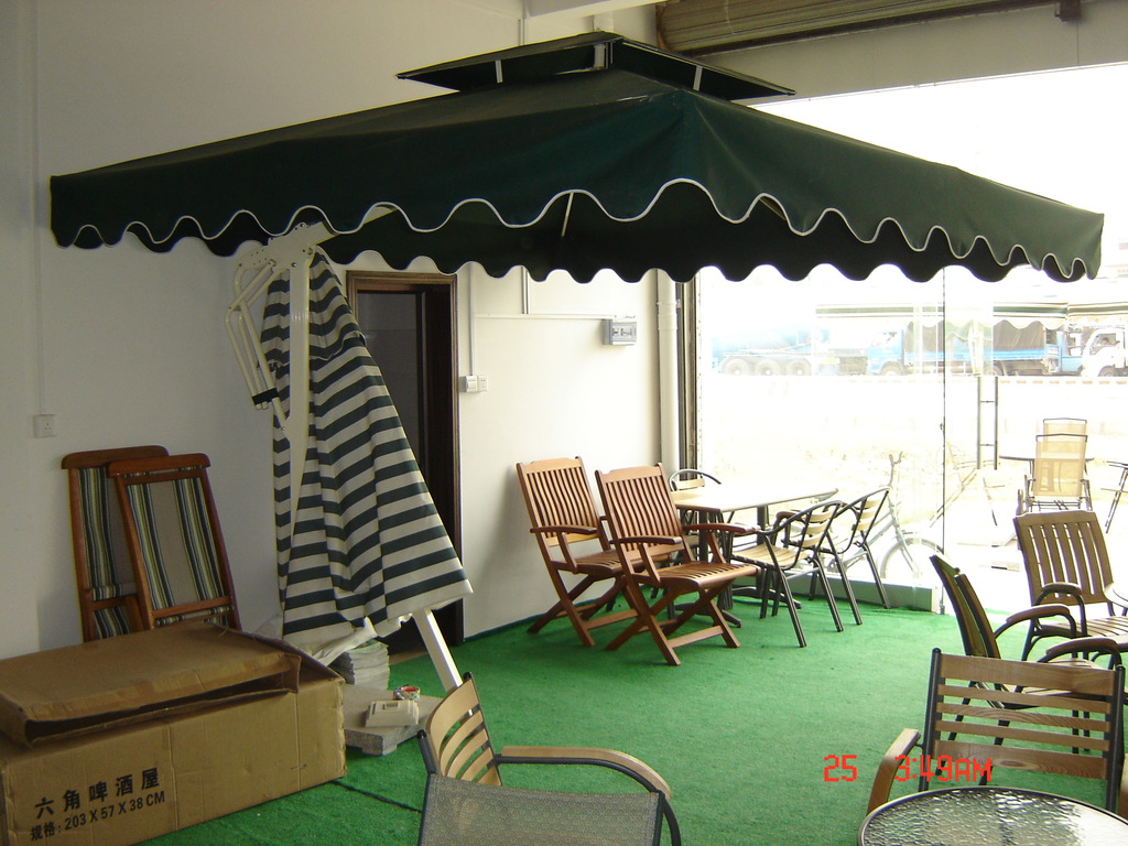 款式有圆形,方形两种款式,11种规格.伞骨架全部都是采用铝合金支架,表面静电喷涂,伞中用紧固件,全部都是不锈钢螺丝,