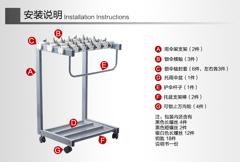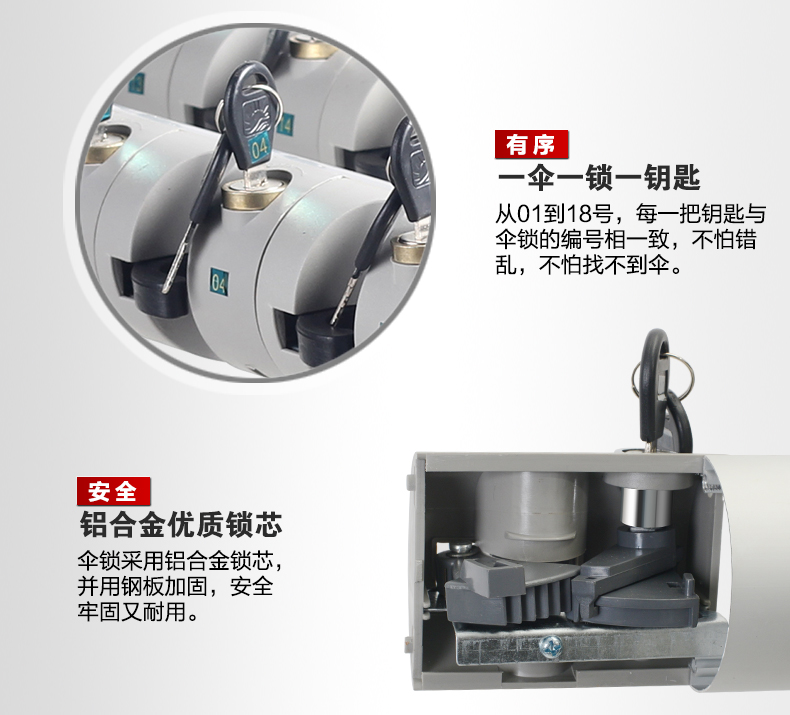 供应金柯18位伞架 带锁雨伞架 铁喷塑编号伞架定制