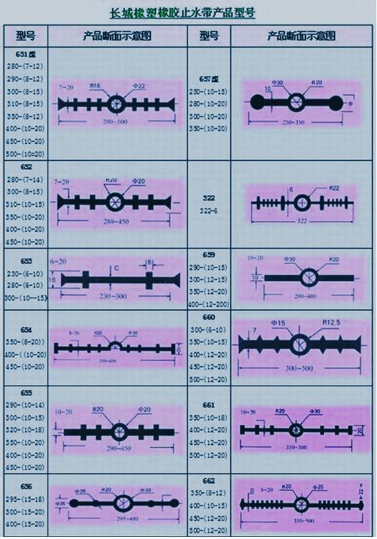 河北石家庄长城橡塑公司橡胶止水带产品简介: 一:产品应用范围:橡胶止水带,可广泛应用于隧道涵洞、输水渡槽、挡水坝、地下构筑物、贮水池、游泳池、屋面等工程中...主要用于(六)、本系列产品主要用于混凝土浇注时设在施工缝内,与混凝土结构成一体的基础工程、地下设施、隧道涵洞、输水渡槽、挡水坝、建筑伸缩装置等。确保工程建设的使用寿命。 二:产品主要物理性能指标参考:参照CB18173.2-2000标准 1:硬度:(邵尔A)60度 ±5. 2:拉伸强度MPa: J≥10. S≥12. B≥15 3:断裂伸长率%: J≥300 S/B≥380 . 4:撕裂强度KN/m: S.J≥25 B≥30. 备注:B:代表变形缝 S:代表施工缝 J:代表有耐老化要求接缝。 三:橡胶止水带主要品种:(( 中埋式橡胶止水带、钢边式橡胶止水带、外贴式橡胶止水带、注浆孔式橡胶止水带、遇水膨胀橡胶止水带 ))等... (一)、橡胶止水带和止水橡皮系以天然橡胶与各种合成橡胶为主要原料,掺加各种助剂及填充料,经塑炼、混炼、压制成型,其品种规格较多,有桥型、山型、P型、U型、Z型、乙型、T型、H型、E型、Q型等。根据使用情况又可分类为中埋式橡胶止水带和背贴式橡胶止水带。该止水材料具有良好的弹性,耐磨性、耐老化性和抗撕裂性能,适应变形能力强、防水性能好,温度使用范围为-45℃-+60℃.当温度超过70℃,以及橡胶止水带受强烈的氧化作用或受油类等有机溶剂侵蚀时,均不得使用橡胶止水带。 (二)、橡胶止水带是利用橡胶的高弹性和压缩变形性,在各种荷载下产生压弹拉伸变形。主要用于地下基础及隧道工程等的永久性接缝及周边接缝上,起到紧固密封、防止渗水漏水作用,确保工程建筑物的使用寿命 (三)、背贴式止水带是利用橡胶具有高弹和压缩变形的特性,在各种压力下产生弹性变形来起到紧固密封作用,从有效地防止建筑结构的渗漏水并起到减震缓冲作用。在许多工程如建筑、水利、桥梁中都有一定的伸缩、防水和防震等要求,而背贴式止水带的使用有效地满足了上述要求。 (四)、钢边橡胶止水带的断面采用非等厚结构,分强力区和防水区,使各部分受力均匀,合理。伸缩孔久壁为平面,钢边橡胶止水带施工时板模夹制接触面大,不易脱位;钢板增设安装孔与钢筋相连接,固定牢靠不易位移。镀锌钢板与混凝土的良好粘接,钢边橡胶止水带使防水性能更佳。 (五)、带注浆孔橡胶止水带产品(带注浆管式止水带、可注浆式橡胶止水带、注浆管止水带)在传统的止水带上进行了全新改进,即在止水 带两侧设置了注浆管和逆止阀,从而提高了施工/伸缩缝的 防水安全系数。如果发生渗漏,通过注浆,能有效地、快 速的修补,防水质量,可靠不复发,其综合费用最经济, 彻底解决了传统止水带的弱点。 产品特点 ·止水带上设有安装孔,便于现场固定及就位; ·止水带两侧注浆管上设有防堵功能的逆止阀,浇砼 时,不会堵塞出浆孔;注浆时,出浆孔出浆流畅; ·通过注浆管和逆止阀可进行快速有效的注浆修补, 修补后的防水质量安全可靠,不复发; ·注浆完毕后,立即将管内的浆液清洗干净,根据需要 可进行多次重复注浆。 应用范围 适用于所有混凝土工程的施工缝和伸缩缝的防水. (六)、橡胶止水带的施工与安装:橡胶止水带是在混凝土浇注过程式中部分或全部浇埋在混凝土中,混凝土中有许多尖角的石子和锐利的钢筋头,由于塑料和橡胶的撕裂强度比,拉伸强低3-5倍,止水带一旦被刺破或撕裂时,不需很大外外力裂口就会扩大,所以在止水带定位和混凝土浇捣过程中,应注意定位方法和浇捣压力,以免止水带被刺破,所以在止水带定位和混凝土浇捣过程中,应注意定位方法和浇捣压力,以免止水带被刺破,影响止水效果, 具体注意事项如下: 1、止水带不得长时间露天曝晒,防止雨淋,勿与污染性强的化学物质接触。 2、在运输和施工中,防止机械,钢筋损伤止水带。 3、施工过程中,橡胶止水带必须可靠固定,避免在浇注混凝土时发生位移,保证止水带在混凝土中的正确位置。 4、固定止水带的方法有:利用附加钢筋固定;专用卡具固定;铅丝和模板固定等,如需穿孔时,只能选在止水带的边缘安装区,不得损伤其它部分。 5、用户定货时应根据工程结构,设计图纸计算好产品长度,异型结构要有图纸说明,尽量在工厂中将止水带连接成整体,如需在现场连接时,可采用电加热板硫化粘合或冷粘接(橡胶止水带)或焊接(塑料止水带)的方法,如用户连接有困难,我公司可派技术人员现场指导。 (七)、橡胶止水带具体注意事项如下 1、橡胶止水带不得长时间露天曝晒,防止雨淋,勿与污染性强的化学物质接触。2、在运输和施工中,防止机械,钢筋损伤橡胶止水带。3、施工过程中,止水带必须可靠固定,避免在浇注混凝土时发生位移,保证止水带在混凝土中的正确位置。 4、固定橡胶止水带的方法有:利用附加钢筋固定;专用卡具固定;铅丝和模板固定等,如需穿孔时,只能选在止水带的边缘安装区,不得损伤其它部分。5、用户定货时应根据工程结构,设计图纸计算好产品长度,异型结构要有图纸说明,尽量在工厂中将止水带连接成整体,如需在现场连接时,可采用电加热板硫化粘合或冷粘接(橡胶止水带)或焊接(塑料止水带)的方法。
