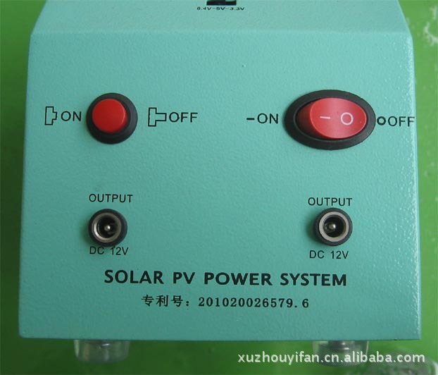 从左至右分别为:太阳能指示灯,蓄电池指示灯,12V输出指示灯,8.4 V输出指示灯,5 V输出指示灯,3.3 V输出指示灯。