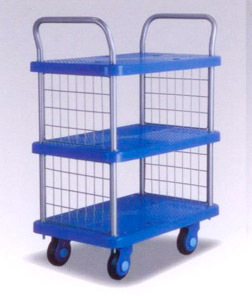 手推车是工厂、仓库、办公楼、实验室和超市常用的搬运设备之一,是实现货物搬运的基本工具之一,它具有结构 简单,自重轻等特点。手推车可以方便地实现货物的搬运,是一种平面运输设备,它在小范围内作业的方便性、实用性能适合大多数条件下少量、小范围的临时短途运输,从而被广泛地运用于各类作业环境。行走静音化:除车板采用高性能树脂以外。