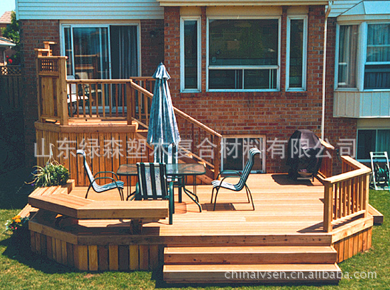 “绿森塑木”制品是由PE塑料与木粉纤维素经过特殊处理加工而成的一种新型绿色环保景观材料。具有不腐烂、不变形、不褪色,拒虫害、防火性能好、不龟裂、无需维护等优点。 绿森塑木产品系列包括:塑木地板、墙板、栏杆、围栏、栅栏、塑木休闲椅、塑木托盘、塑木垃圾筒、塑木葡萄架、凉亭、树池、花箱等。用途:栈道地铺板,适用于室外、露天、日晒、雨淋的园林、休闲广场、体育埸地、近水景观等埸所 适合使用于山区、海边、公园、别墅等公共区域,如步道、栏杆、护栏、游艇码头设备、凉亭、棚架、花箱等户外设施。市政园林、建筑工程、文体场馆、私家庭院及室外装饰、旅游胜地、码头和街道上的许多设施