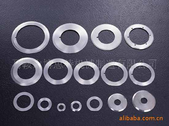 主要用于纸张,薄膜,金,银箔,铜箔,铝箔,无纺布,布,胶带,磁带等物品的分切,要求刀片切断阻力最小,耐磨性最大.出于对商品精度的要求刃具有时须达到微米级精度,选料:9CrSi,Cr12Mov,W6Mo5CrV2,W18Cr4V等