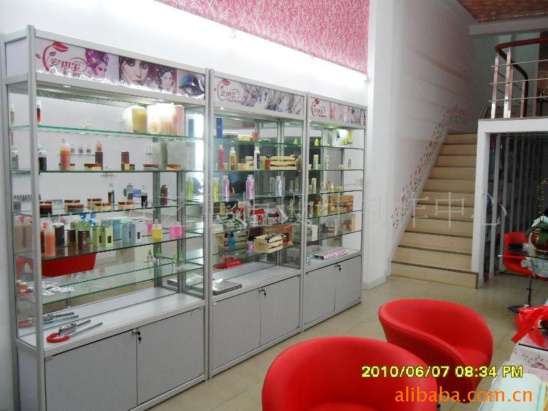 本展柜材质为铝钛合金。易于拆装和运输,店主可以根据自己的店面装修风格、展示产品的需求、自己的主观喜好选择型材颜色和搭配板材颜色,根据店面的大小确定展示柜的尺寸,加以设计制作,配以透明玻璃、镜子,和明亮的灯光效果,可以使销售的产品得以完美的展示。