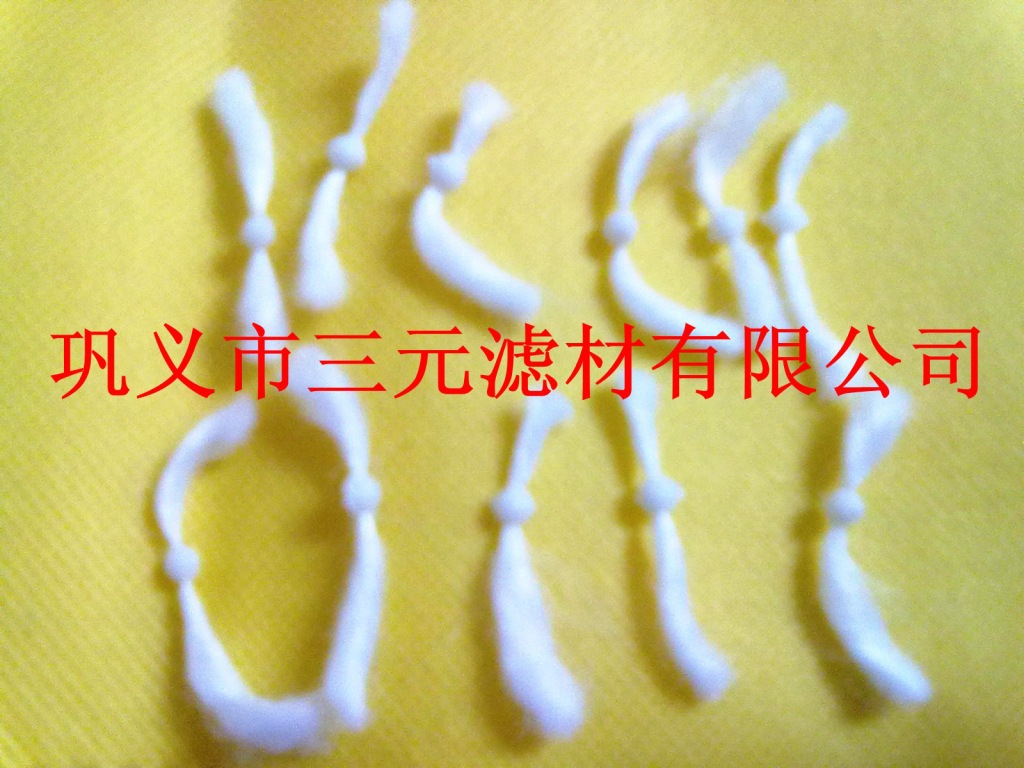 新型纤维滤料是在原有的滤料基础上发明出来的,它既有纤维滤料过滤精度高和截污量大的优点,又具有颗粒滤料反冲洗洗净度高和耗水量少的优点,尤其是在滤床里面可以自动旋转,大大提高了反冲洗精度,由该滤料形成的滤床空隙率分布接近理想滤料的结构。在该滤床的横断面(水平)上空隙率分布均匀,确保了过滤时水流通道大小一致性,其直接效果是截污量均匀,水流短路现象得以避免。在该滤床的纵断面(垂直)空隙率分布由上至下逐渐减少,空隙率沿滤床纵断面呈上大下小的梯度分布,该结构十分有利于水中固体悬浮物的有效分离,即滤床上部脱附的颗粒很容易在下部窄通道的滤床中被捕获而截留。因此新型纤维滤料得以实现高速和高精度的过滤。