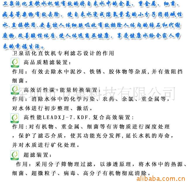产品的升级换代和注入人性化设计是我们赢得市场的又一利器,节能环保,水流量大,水质清澈,安装使用方便,使用周期长,口感甘甜,水质达到甚至超过国际健康饮用水标准。