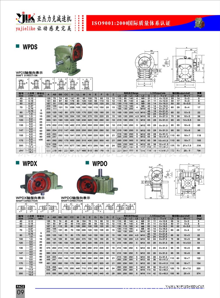 WP型蜗杆减速机,具有结构紧凑、安装方便、工作平稳可靠、无噪音(特别是单头蜗杆)、自锁性等特点。该减速机广泛用于矿山、起重、运输、化工、轻工业等各行业中比较小型的设备上,该减速器适用条件如下:蜗轮的滑动速度不大于7.5m/s;高速轴的转速不大于1500转/分。工作环境温度为-40~40℃,能正反两向运转。
