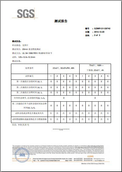 除臭氧过滤网阻燃等级测试报告:UL94 V-0