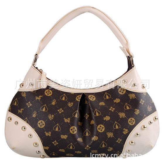 【产品名称】:[蓝美人]优雅大方系列白色配皮香肩包 啡色