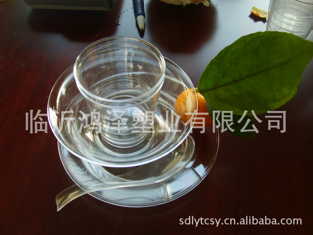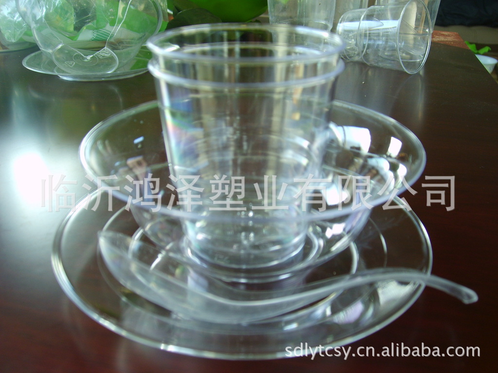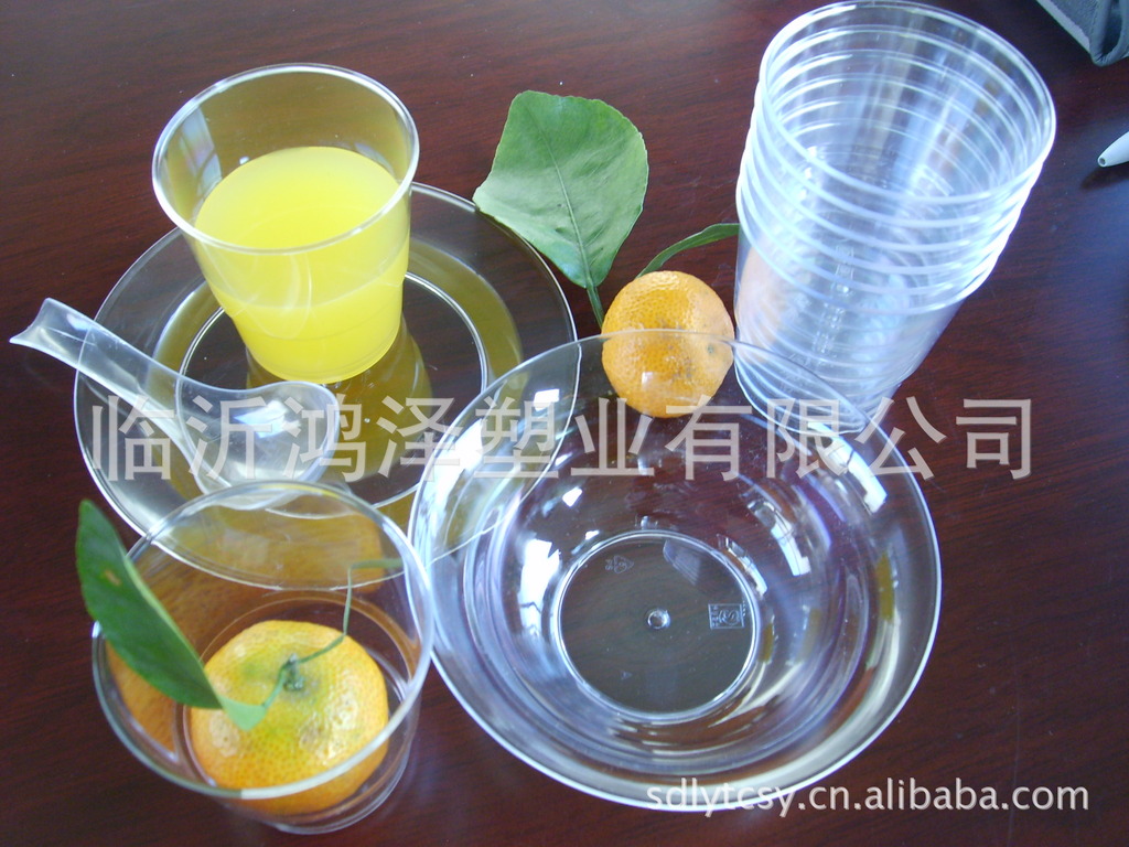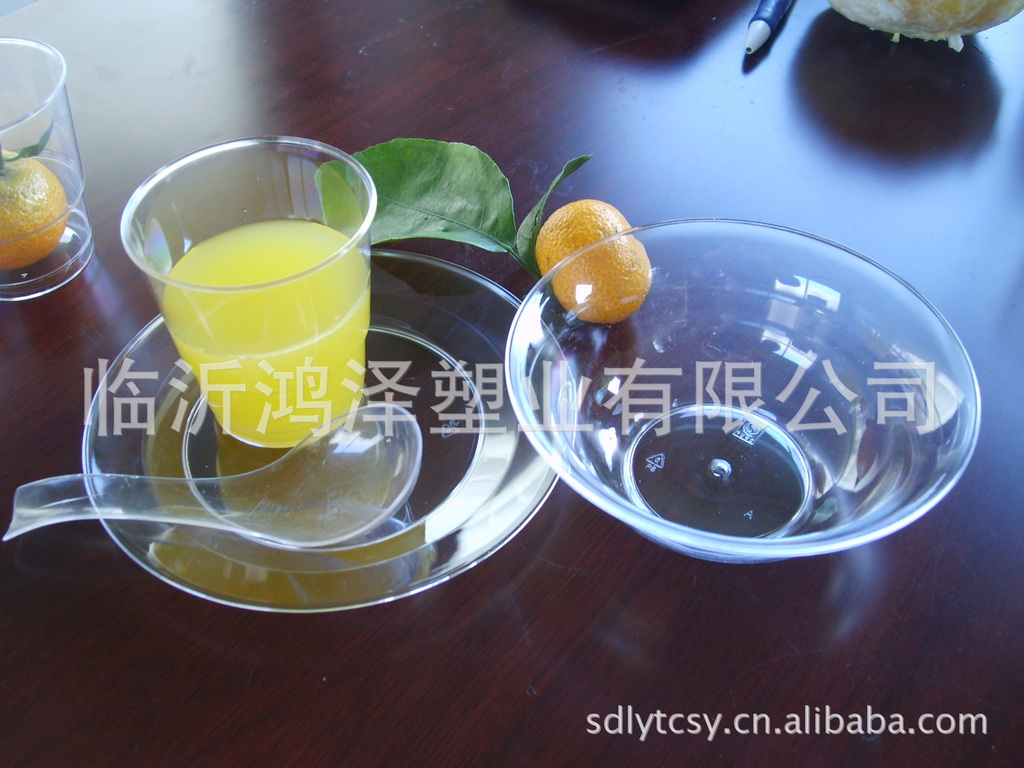 鸿泽一次性航空餐具/一次性航空水晶餐具,套装餐具具体为5件套,杯子,盘子,碗,勺子各一个,产品采用食品级、环保型、高透明PS材料,经过高温注塑成型,经紫外线杀菌消毒后上自动流水线无菌包装而成。