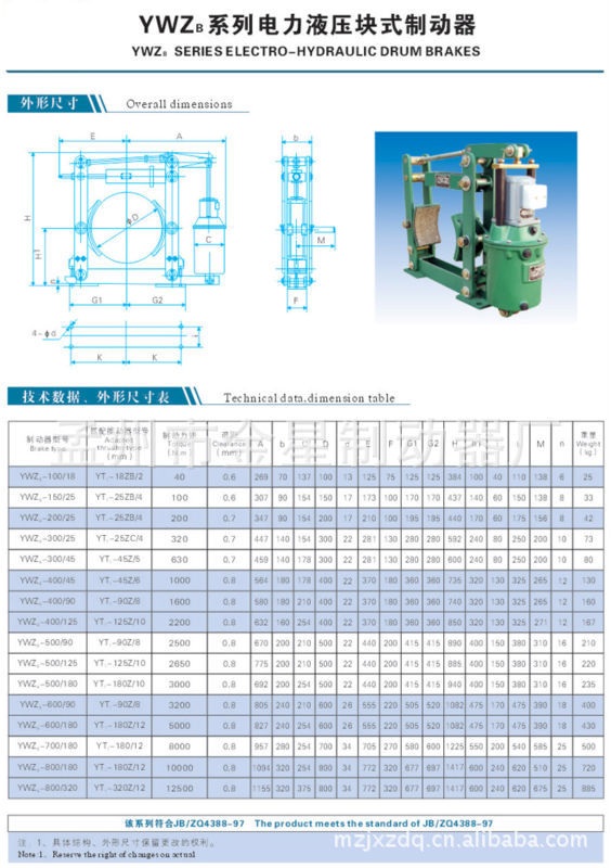 孟州市金星制动器厂是集开发、研究、制造服务为一体的专业化生产厂家。本厂技术力量雄厚,检测手段齐全,设备精良,工艺先进,具有较强的产品开发能力。主要生产YWZ1、YWZ2、YWZ3、YWZ4、YWZ5、YWZ8、YWZ9、YWZ10、YWZ12、YWZ13系列电力液压制动器。各种防爆型制动器以及TJ2系列新型节能电磁制动器,产品规格齐全,性能可靠,质量上乘。畅销全国各地,深受用户好评。