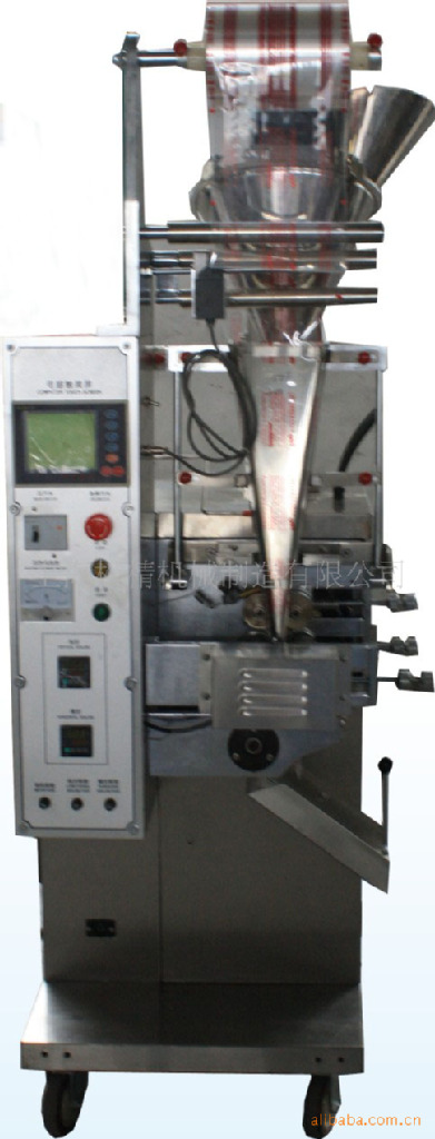 采用微电脑控制,螺杆计量。可自动完成制袋、计量、充填、封合、分切、计数等功能。无级调整袋长、振荡下料、日期打印、易撕口。包装成品的形状为三边封或四边封。三边封为常规产品,四边封需特殊定制热封器。