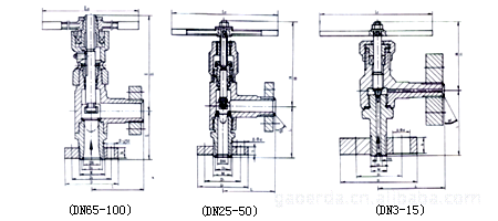 截止阀属于强制密封式阀门,所以在阀门关闭时,必须向阀瓣施加压力,以强制密封面不泄漏。当介质由阀瓣下方进入阀六时,操作力所需要克服的阻力,是阀杆和填料的磨擦力与由介质的压力所产生的推力,关阀门的力比开阀门的力大,所以阀杆的直径要大,否则会发生阀杆顶弯的故障。近年来,从自密封的阀门出现后,截止阀的介质流向就改由阀瓣上方进入阀腔,这时在介质压力作用下,关阀门的力小,而开阀门的力大,阀杆的直径可以相应地减少。同时,在介质作用下,这种形式的阀门也较严密。我国阀门“三化给”曾规定,截止阀的流向,一律采用自上而下。