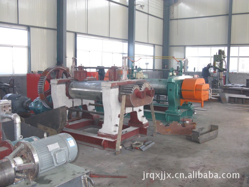 本机主要有一体底座、机架、炼胶机前后辊筒、传动齿轮、减速机、调距装置、辊温调节装置、安全开关、电气控制系统组成。