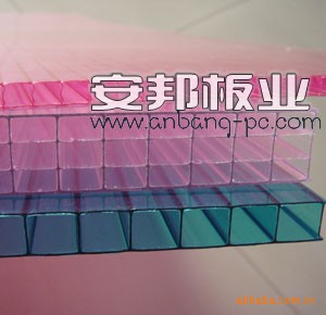 阳光板耐候性:安邦建材PC结构板表面带有抗紫外线的共挤层,可防止太阳光紫外线引起的树脂降价变黄。表面uv共挤层具有化学键吸收紫外线并转化为可见光的功能。对植物光和作用有良好的稳定效果。可提供10-20年的品质保证。阳光板阻燃性:按国家GB8624-1997测试,安邦建材PC结构板属难燃B1级。燃烧温度为580℃,燃烧时无熔滴,无毒,离火自熄,难燃性一级。阳光板隔音性:安邦建材PC结构板中空结构和聚碳酸脂良好的隔音特性,能有效的降低噪音。阳光板抗冲击:安邦建材PC结构板冲击能力是同等玻璃的200-250倍,是同等厚度的压克力的30倍,是钢化玻璃的2-20倍。落锤冲击实验:三公斤重锤,从三米高下落冲击后无破裂。阳光板耐温性:安邦建材PC结构板在40℃-120℃范围内不回引起变形和品质变化。阳光板节能性:安邦建材PC结构板的隔热效能比同等厚度玻璃高7%-25%。阳光板弯曲行:安邦建材PC结构板可以自然弯曲,还可以热弯成型。阳光板轻便性:安邦建材PC结构板耐力板重量只有同等厚度玻璃的50%,中空板重量只有同等玻璃的10-15%。