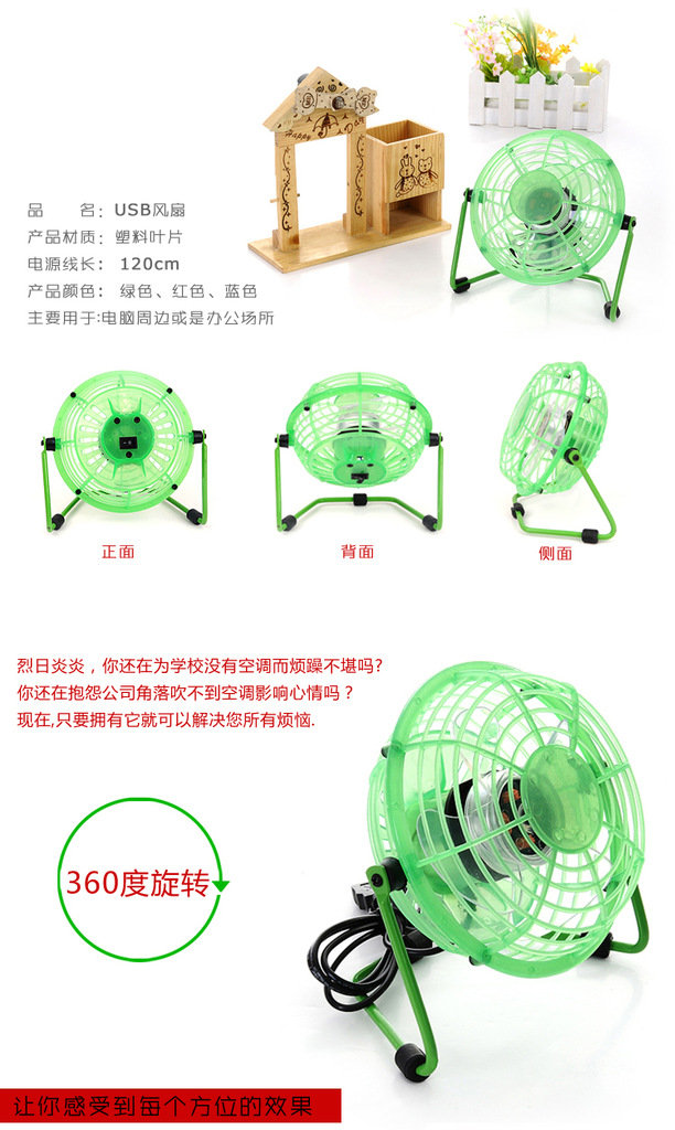 欢迎批发正品“欧伟工艺”产品 版权所有,翻版必究! 【名 称】:由噻USB风扇 【货 号】:UF-041 【产品尺寸】:130*70*130MM 【颜 色】:黑、红、绿、黄 【材 质】:金属框 【功 率】:2.5W. 【电 压】:DC5V. 【装箱数量】:36/pcs 【一箱毛重】:16kg 【外箱尺寸】:59*32*48cm 【产品描述】: 新研发产品---USB风扇。 金属外壳,外观精美小巧,上下仰俯角度可调整,功率低电流小,不用担心因为电流过高烧坏电。 厂家直销可来样定做! 义乌市欧伟工艺品有限公司是集研发,设计,生产,销售一体的创新型企业,旗下由噻(USAY)品牌致力于打造中国USB风扇第一品牌,微环境调节相关产品的第一品牌,是白领上班族改善工作环境的最强品牌,以超强的创新设计能力占领国内外市场。公司设计的USB超静音风扇以其实用性及经典的外观深受白领的欢迎。 USAY重金投入,培养人才,组建专属于USAY的设计、研发团队。每一位研发人员都是USAY精心挑选,用心培育的专业人才。他们有敏锐的市场洞察力,能够及时掌握市场动向,研发出最迎合市场需求的产品;他们有三过家门而不入的敬业精神,对产品研发的每一个环节都有锱铢必较的精神,尽力做出最完美的产品;他们有丰富的专业知识,并能熟练运用于实际操作中,保证每一款产品都性能稳定、设计前卫、功能强大。 USAY拥有2个大型生产车间,百名生产一线员工。所有产品均为流水线作业,每个环节都严格把关,最大限度降低次品产出概率,使消费者买的放心,用的舒心。USAY对品质的管理相当严格,每一批成品都经过严格把关,决不让任何次品流入市面,这就是USAY对品质的执着追求! 感受USAY的魅力,专注健康的价值! 本公司销售多种优质产品,价格公道,产品质量优质,欢迎新老客户来电具体详谈。我们的宗旨是“小胜凭智,大胜靠德”,我们本着“诚信第一”“专业专注”、“服务一流”的态度立足。义乌市欧伟工艺品有限公司是专注于设计、生产小空间环境调节的相关产品的企业,致力于打造小空间环境调节第一品牌。目前旗下有专业风扇生产线三条,日产10000台USB小风扇,是国内最大的铁艺USB风扇生产厂家。电机生产线2条,日产10000台电机,达到风扇电机自足。另外加湿器,空气净化器,办公取暖器等深受广大白领的欢迎。 热诚欢迎各界前来参观、考察、洽谈业务 产品售后说明: 本产品三个月接受一次有质量问题的产品,即购买日起的第三个月,可将有质量问题的产品一次性发往本厂进行调换货处理,运费由买家承担,本厂不接受到付的返厂产品。 |