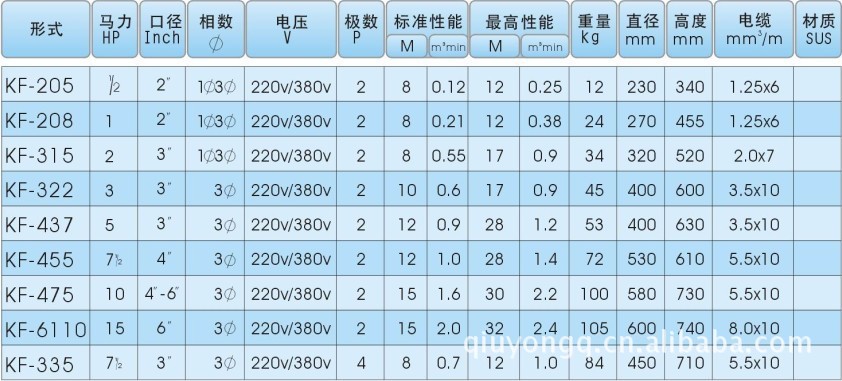 1、KF无堵塞全不锈钢污物泵浦整体外壳采用不锈钢SUS#316材质脱腊精密铸造制成,专抽取有微酸弱碱的污物废水;