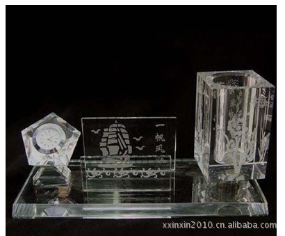 水晶激光内雕,又称水晶内雕,通过高能激光把图案或者文字,LOGO雕在水晶里,跟水晶完美结合在一起.是一种高档,时尚水晶礼品,纪念品,促销礼品.可以根据客户的要求定做。水晶内雕是以激光机将一定波长的激光打入水晶内部,令水晶内部的特定部位发生细微的爆裂形成气泡,从而勾勒出预置形状的一种水晶加工工艺,也泛指以这种工艺加工出来的水晶工艺品。
