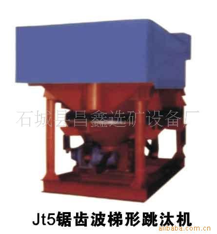 锯齿波跳汰机跳汰机是现代重选设备之一。由于其处理能力大,选别粒度范围广,操作维护简单,作为粗选或者精选被广泛用于选别金,锡,钨,钛,赤铁太,煤等矿物。锯齿波跳汰机是根据跳汰床层理论分层规律,在传统跳汰机基础上进行研制和改进的一种节能重选设备,其跳汰脉动曲线呈锯齿波形使上升水流快于下降水流;上升时间短,下降时间长,克服了正弦波,脉动曲线跳汰机产生的上升,下降水流和作用时间相同的缺陷,增强了床层的松散度,缓解了吸入作用,使矿物中的重粒得到充分沉降,大大提高了设备的选别比能力和回收率。其与正弦波跳汰机进行工业试验对比:锯齿波跳汰机作业回收率比正弦波跳汰机分别提高sn:3.01%,w:5.5%,pb:1.63%,zn:2.04%;耗水量减少30%—40%,占地面积减少1/3,且冲程可调整,由于采用电磁调速电机进行拖动使冲次可无级调节。其性能达到国内先进水平,使目前较理想的节能重选设备之一。