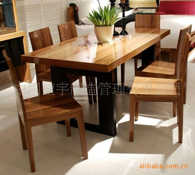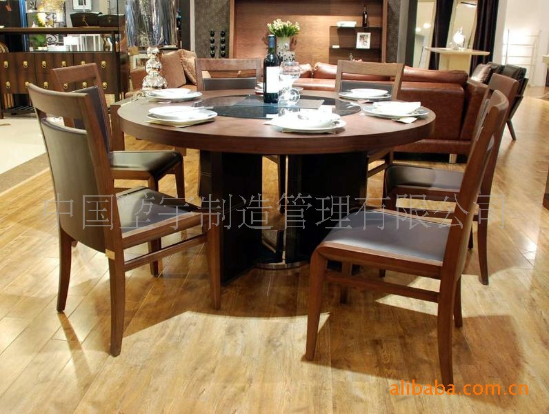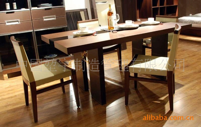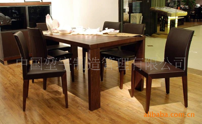 豪华别墅餐厅用桌,高档酒店配套工程。桌子所用材料全为进口材料,木材为泰国进口橡木,软包所用的海绵为高密度海绵,所用的布料为上等绒布。