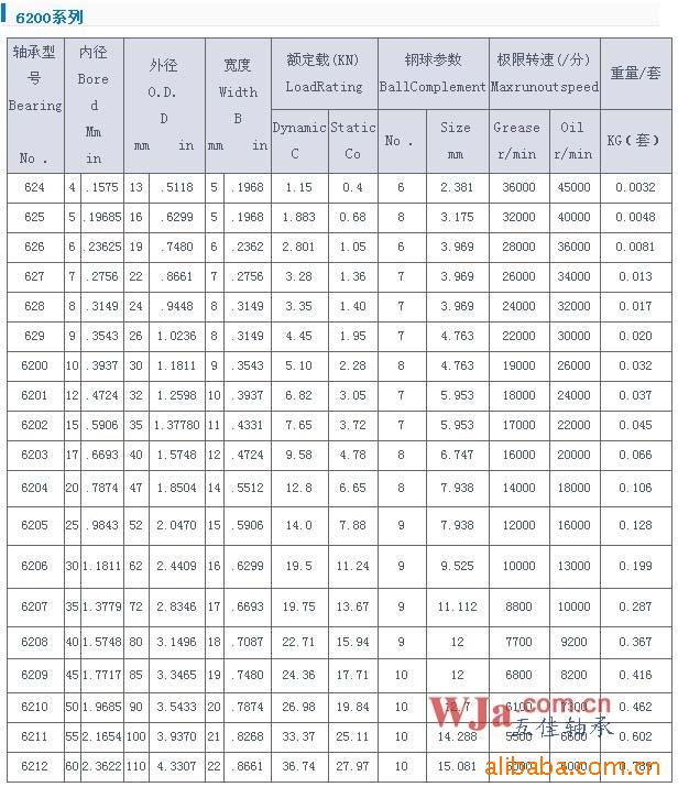 五佳轴承公司专业生产销售深沟球轴承、公制圆锥滚子轴承、英制圆锥滚子轴承、推力球轴承、圆柱滚子轴承、带座外球面轴承、关节轴承、调心球轴承,订做非标轴承,产品多达千余种。产品重点服务于矿山、冶炼、油田、钢厂、工程机械、起重机械等行业。本公司独立研发的挖掘机专用轴承,现已经成功配套于国内三家大型知名工程机械企业两年之久。产品质量得到了用户充分的肯定和认可。本公司生产的英制圆锥滚子轴承,为进口设备的主机配套和维修提供了有力保障,并填补了国内的多项空白。