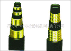 用以输送气体、液体、浆状或粒状物料的一类管状橡胶制品。由内外胶层和骨架层组成,骨架层的材料可用棉纤维、各种合成纤维、碳纤维或石棉、钢丝等。一般胶管的内外胶层材料采用天然橡胶、丁苯橡胶或顺丁橡胶;耐油胶管采用氯丁橡胶、丁腈橡胶;耐酸碱,耐高温胶管采用乙丙橡胶、氟橡胶或硅橡胶等。