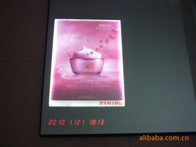 五、机械的特性 1.端子强度试验: 端子插入,操作正常无异常。2.板屈强度试验: 弯曲30度无异常。六、信赖性试验 1.高温度试验 温度50℃中放置60小时后,外观动作无异常。 2.低温度试验 温度-30℃中放置60小时后,外观动作无异常。 3.温湿度试验 温度30℃,相对湿度95%以上中放置60小时后,外观动作无异常。 七、带时间日期显示和设置,多种动感画面模式定时开关和画面切换速度设置(1~25秒),动感画面可以支持4个、6个、8个(或客户定制),也可以为客户提供定制开发。八、产品广泛用于:餐厅、咖啡厅、酒店、茶吧、ktv、电影院、游泳馆、健身房、体育馆、高尔夫场、spar、美容美体中心、百货公司、综合性卖场、专卖店等场所