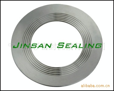 齿形垫片是一种金属软垫片,密封效果优于金属平垫,一般用精密的车床在金属不锈钢平垫片的二面加工成同心的90度夹角波形的锯齿状沟槽,根据不同的介质,可选择柔性石墨、PTFE、无石棉板或其他一些软金属,粘贴在垫片的二面,利用软性覆盖层的密封性以及金属的强度、弹性好的优点,还兼有迷宫密封作用,故达到同样的密封效果,垫片压紧力较小。齿形组合垫片也可不带覆盖密封层直接使用,可能达到良好的密封效果,但在高压场合中容易对法兰的表面造成损失。齿形组合垫片主要应用于中、高压力和高温的压力容器和管道法兰的密封。