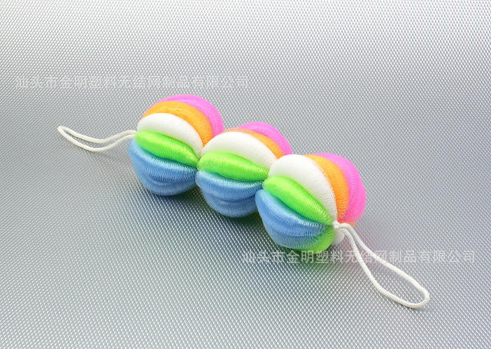 系现代人日常洗澡中必不可少的洗涤用品之一。 产品有单色、双色、三色网,颜色由客户自由选定,欢迎海内外客户来电或来邮洽谈。