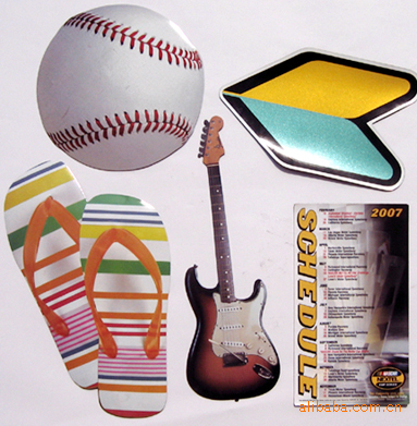 1)磁性冰箱贴:采用下面软胶磁铁+上面铜版纸彩色印刷腹膜制作而成。