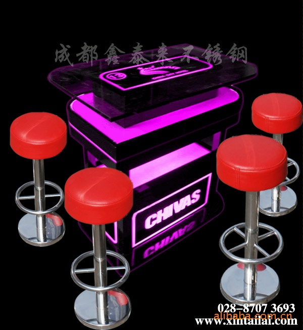 成都鑫泰来不锈钢工程公司专业制造夜总会、酒店、酒吧等娱乐场所高档不锈钢酒柜酒具、吧台、不锈钢发光茶几、发光吧桌吧凳(吧椅)及金属异型产品。产品融入时尚光元素,新潮时尚别样,造型精致洗练。自主研发、专业生产、配套安装。