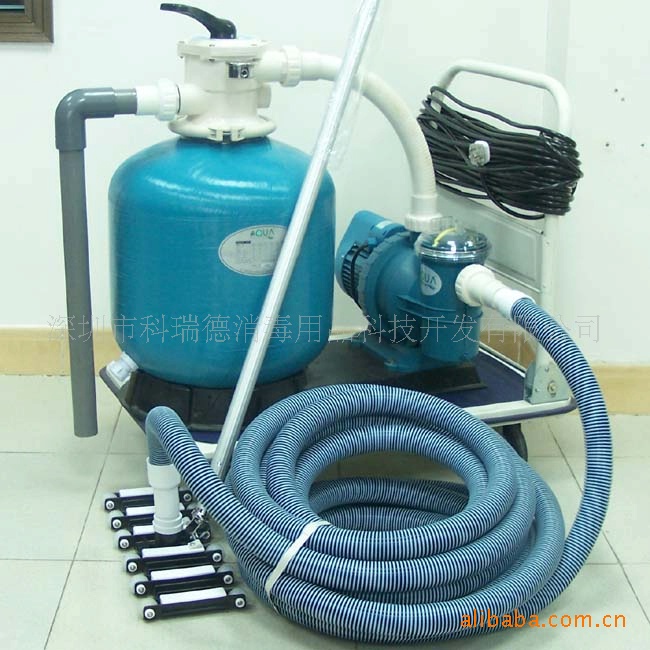 产品编号:2068组合式,节水型:主要用于游泳池及景观池的水下吸污.2.0匹进口水泵,S-16沙缸,19寸吸污头,15米吸污管(1.5寸),5米伸缩杆,手推车,50米电线.