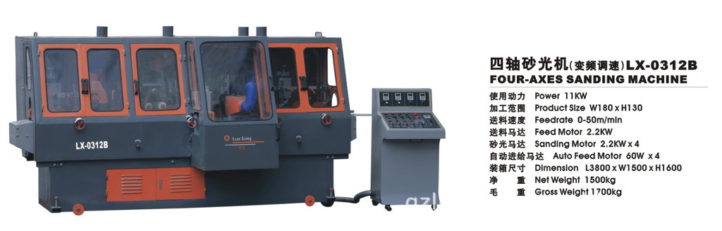 四轴砂光机是是针对各种异型木线条表面抛光处理的专用机械.它适用于相框、画框、百叶窗、家具厂