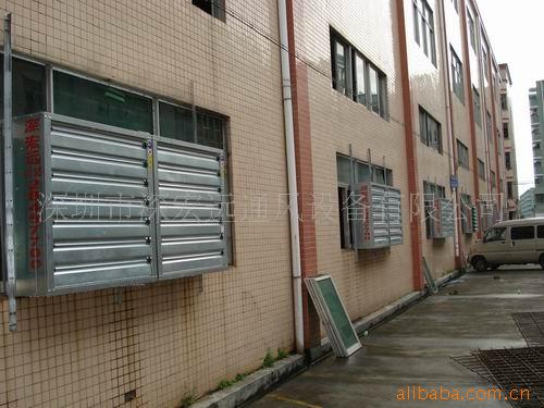 水帘和风机分别装在厂房的两面墙上,风机抽风时,使厂房的空气形成负压,迫使厂房外未饱和的空气流经水帘多孔湿润的表面,引起水分蒸发吸取大量潜热,从而降低空气自身的温度,在风机的作用下,这些被降低温度的湿润空气就源源不断的进入厂房。
