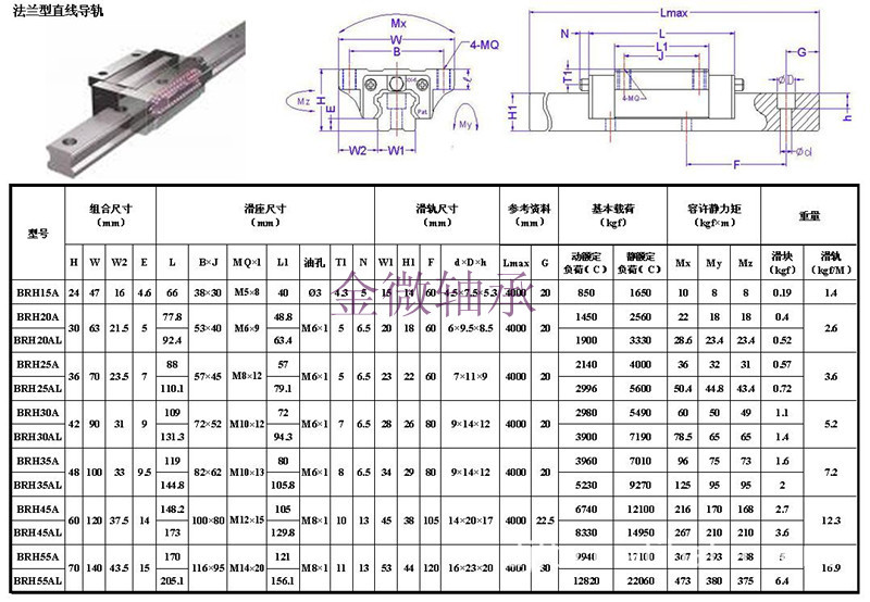 公司生产的直线导轨用于直线往复运动场合,拥有比直线轴承更高的额定负载, 同时可以承担一定的扭矩,可在高负载的情况下实现高精度的直线运动。直线导轨是一种滚动导引,它由钢珠在滑块与导轨之间作无限滚动循环,使得负载平台能沿着导轨轻易的以高精度作线性运动,其摩擦系数可降至传统滑动导引的1/50,使之能轻易地达到μm级的定位精度。滑块与导轨间的末制单元设计,使得线形导轨可同时承受上下左右等各方向的负荷,专利的回流系统及精简化的结构设计让线性导轨有更平顺且低噪音的运动。