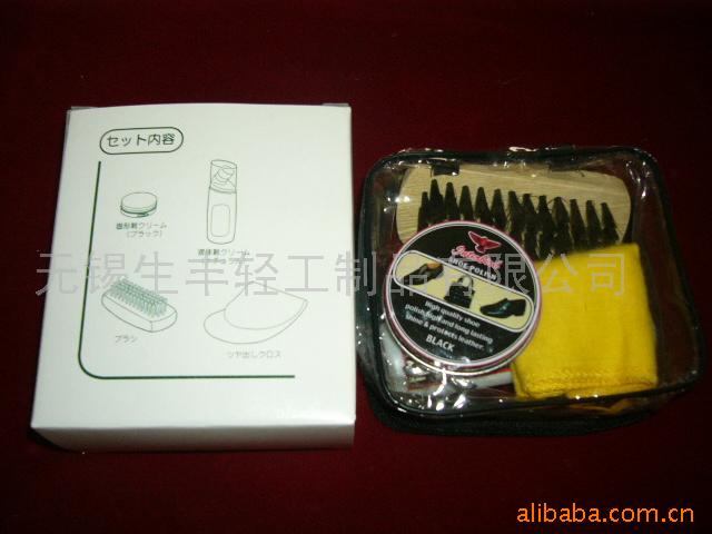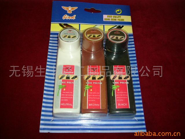 我司常年批发供应各种鞋用制品,包括各式鞋用油蜡:铁盒包装的固体鞋油,罐装液体鞋油,膏体鞋油,注入式鞋油,多功能性鞋油等;各式鞋擦,鞋刷,鞋布,组合精美,配备齐全的鞋油套装,欢迎新老顾客前来洽谈咨询!