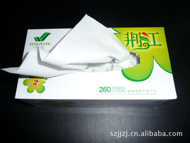 盒装纸 纸盒材质:350g灰卡纸,可过油磨光,22*11*5cm;纸巾材质:100%进口原木浆纸,18*20或20*20cm/张,30-80抽/盒,80盒/箱;起订量5000盒起;价格:0.9元起,量多价格可另算。