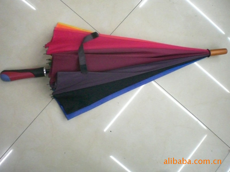 供应16K*58公分彩虹伞,槽骨伞架,塑料手柄。