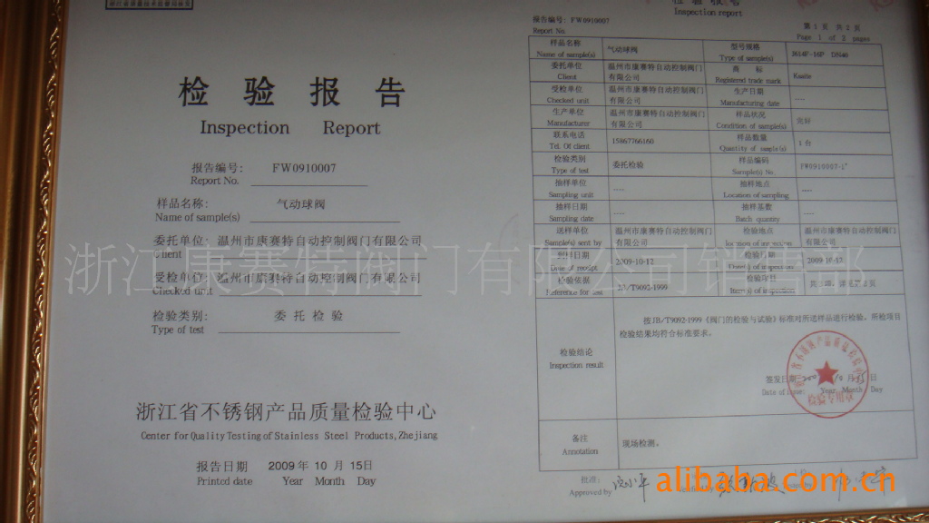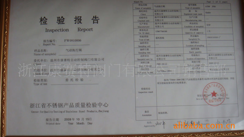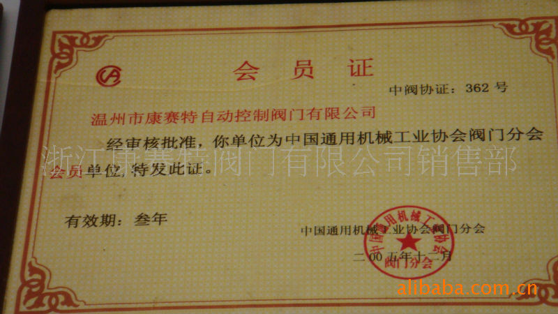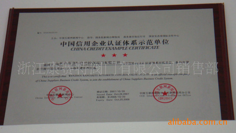 公司成立至今,载誉前行,口碑不断;公司产品质量过硬,有完备的检验系统和齐全的检验证书,产品同ISO9001认证,CE认证,CA认证;随着公司业务的扩大新的认证在持续申请中,TS认证、韩国KS认证和美国API认证的申请已递交;同时我公司是温州阀门行业协会理事单位、中国通用机械工业协会会员、中国信用企业认证体系示范单位、温州泵阀工业协会副会长单位、年度优秀民营企业等诸多荣誉。