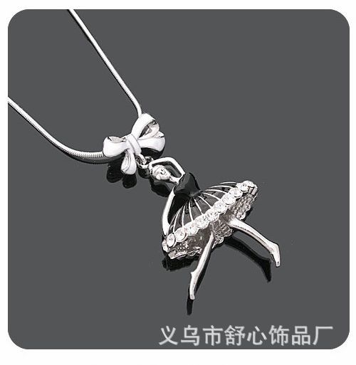 名称: 蝴蝶结芭蕾裙跳芭蕾女孩画油项链A102-22