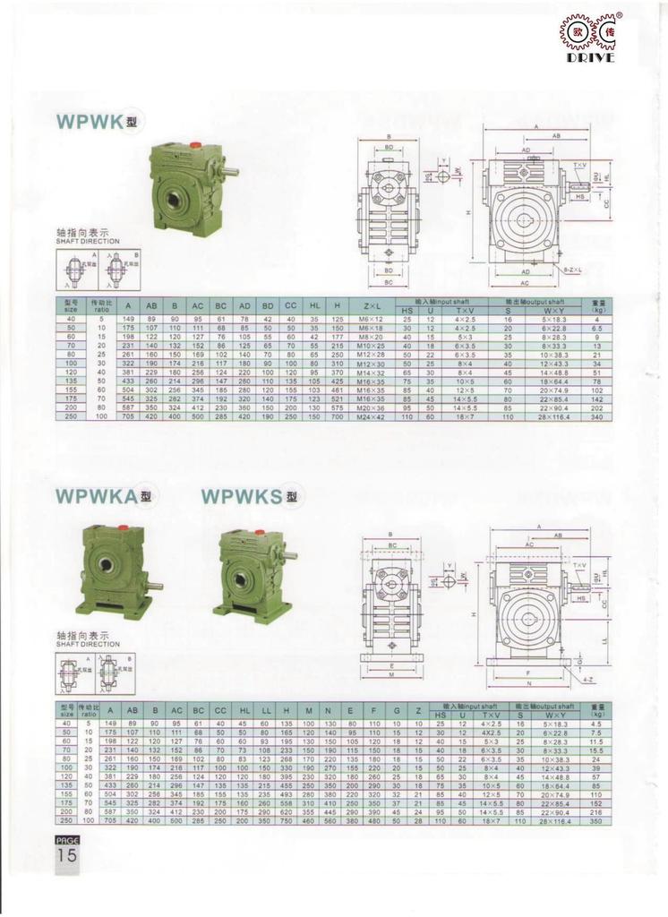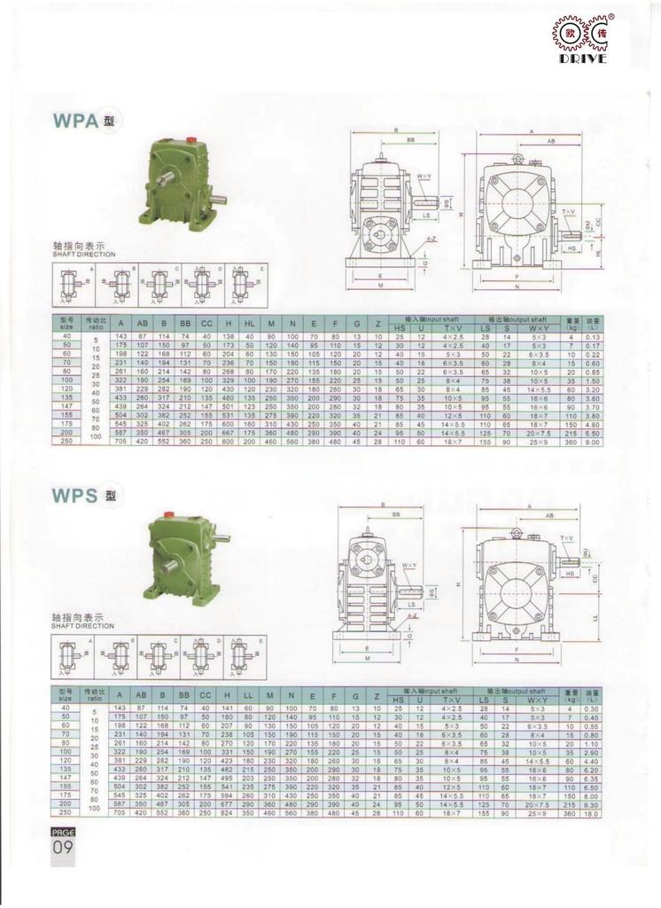 机座号:40-250不等,速比:5-100,双级速比可达200-900.