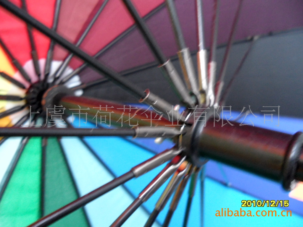 【伞骨伞架】 本公司生产的伞的伞架及配件都是由公司自主研发生产的。伞架包括:钢丝伞架、钢槽伞架、纤维伞架、铝加纤维、钢加纤维等等。伞架表面处理有:镀锌、镀镍、电着、五彩等等。