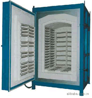 炉壳由型钢及钢板焊接而成;炉衬由轻质高铝砖、硅酸铝纤维,保温砖、珍珠岩粉等砌筑而成;加热原件用OCr27Ai6Nb电热合金丝绕制成型后安装在工作室的扇形搁砖上;炉盖及起闭机构,炉盖为整体式,起闭机构采用电动起闭,炉盖起闭时与控制系统联锁以保证操作工人的安全,炉盖起时,电源能自动切断。