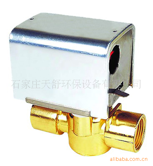 用于中央空调系统的风机盘管或采暖设备中的冷热水的流量的控制,其中由温控器控制电动阀电机,并通过减速机构和复位弹簧使阀门开启或关闭,而实现管道内冷热水的通断,以达到室内的设定温度。