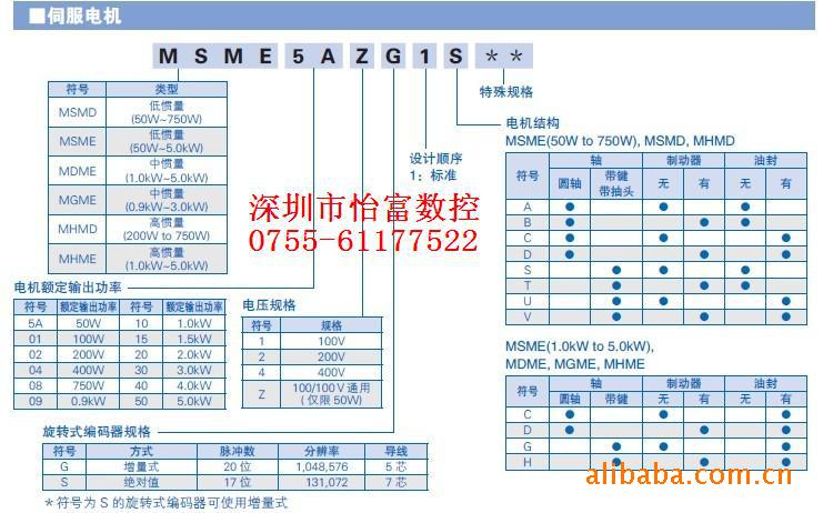 1.0KW:通用型MHME102GCG+MDDHT3530脉冲型MHME102GCG+MDDHT3530E