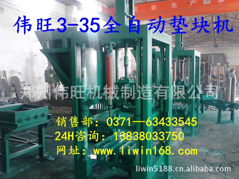 伟旺垫块机简介: 该设备主要生产各种异型混凝土垫块,钢筋支撑、主要用于楼房现浇,公路、铁路、桥梁及古建筑,钢筋混凝土保护层垫块、横梁支撑、钢筋层间距标准垫块支撑等。 水泥钢筋保护层垫块的质量,直接关系到钢筋在混泥土工程结构中的承载力.耐久性.耐酸碱.防火等状况,对工程质量起着重要的作用,目前在发达国家(如日本.美国等)不规则的水泥砂浆钢筋保护层垫块已被淘汰,塑料钢筋垫块也因种种缺陷被禁用,规范的标准型混泥土钢筋保护层垫块已全面推广。