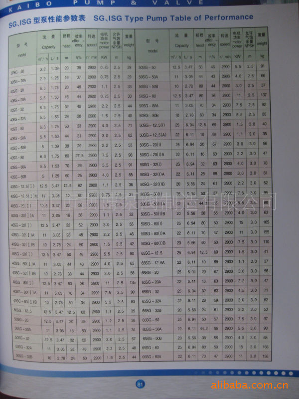二、特点 1.立式结构,安装调试方便,独特设计的电机和泵体采用联接体联接,同心度高,加工精度高,占地面积大大减少,缩减了泵房建筑投资30%-60%,底脚稳固,结构紧凑,精美的铸造和外观赋予立式离心泵新的美感,使产生品焕发艺术的魅力,可以和国外著名厂家立式泵媲美。 2.配用国内著名厂家生产的Y系列标准通用电机,运行平稳,噪音极低。 3.轴承采用国际著名品牌精密轴承,精度高,可靠性好,寿命长。 4.叶轮采用90年代最优秀可自平衡轴向力的水力模型,使得泵轴承和机械密封使用寿命大大延长。 5.电机轴承座内的轴承都配有加油孔和放油孔,对轴承的维护保养十分方便。 6.可拆卸硬性中间联轴器,使泵起动无振动,无噪音,旋转部件设有可靠的安全防护罩,安全性极好。 7.机械密封采用不锈钢,碳化钨,氟橡胶等材料制成,耐高温,高压,运行寿命长,无渗漏,对轴无磨损,保证工作环境整洁。 8.泵盖结构设计独特,只要卸下硬性中间联轴器,泵盖螺母,即可十分轻便取出轴承座。泵盖,泵轴,叶轮等组合件,进行更换机械密封和叶轮,而不必拆卸电机泵体和管道,维修方便快捷。