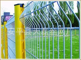 合适的折弯,造就了此种产品独有的美观效果,而且表面采用多种 颜色的浸塑处理,如黄色,绿色,红色,立柱与网片不同颜色的搭配更是令人赏心悦目,同时此种产品多采用带底盘立柱,安装只需打好膨胀螺栓,非常的快捷。